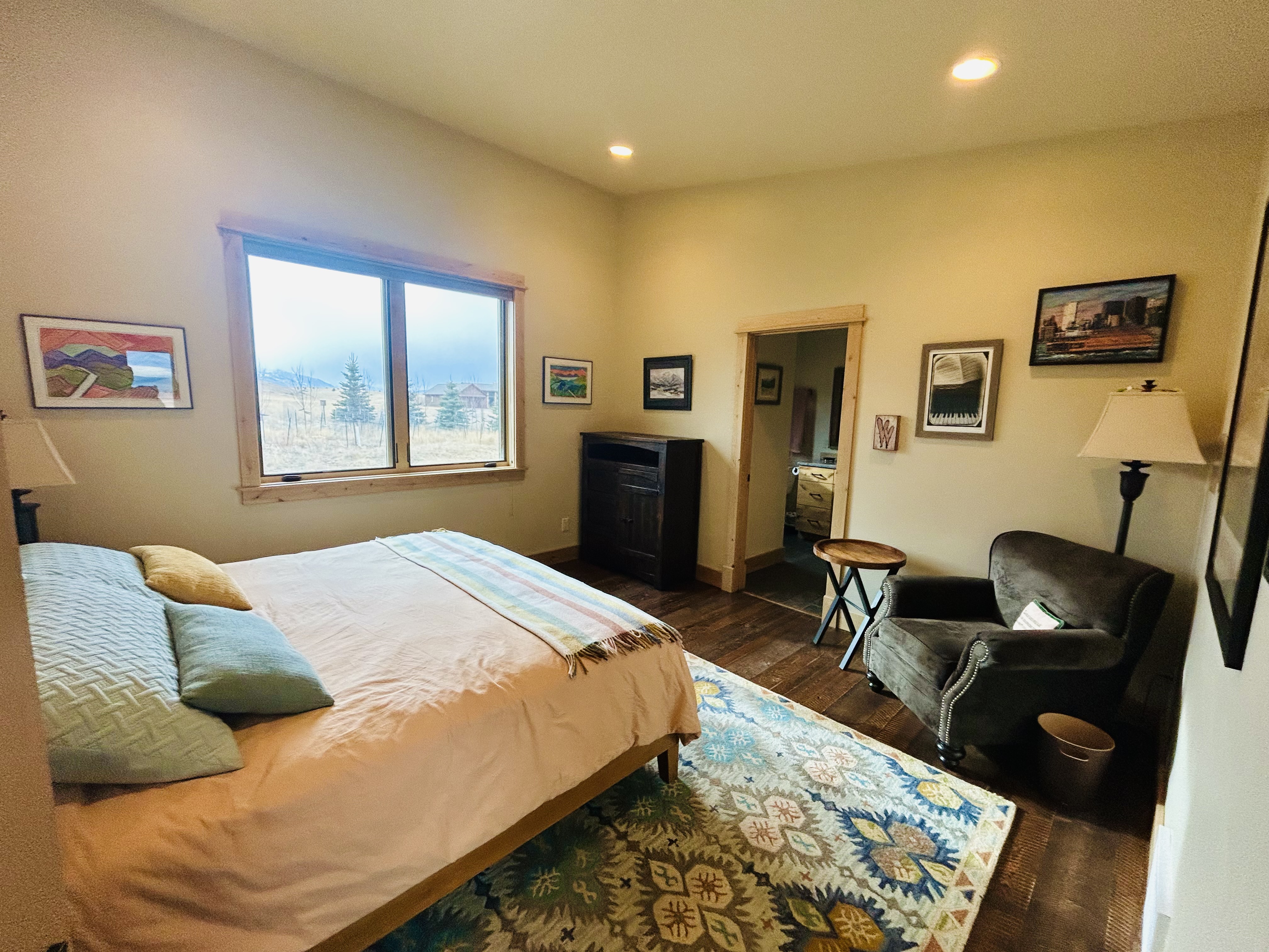 - Main-Level Bedroom: King bed + ensuite with walk-in shower.