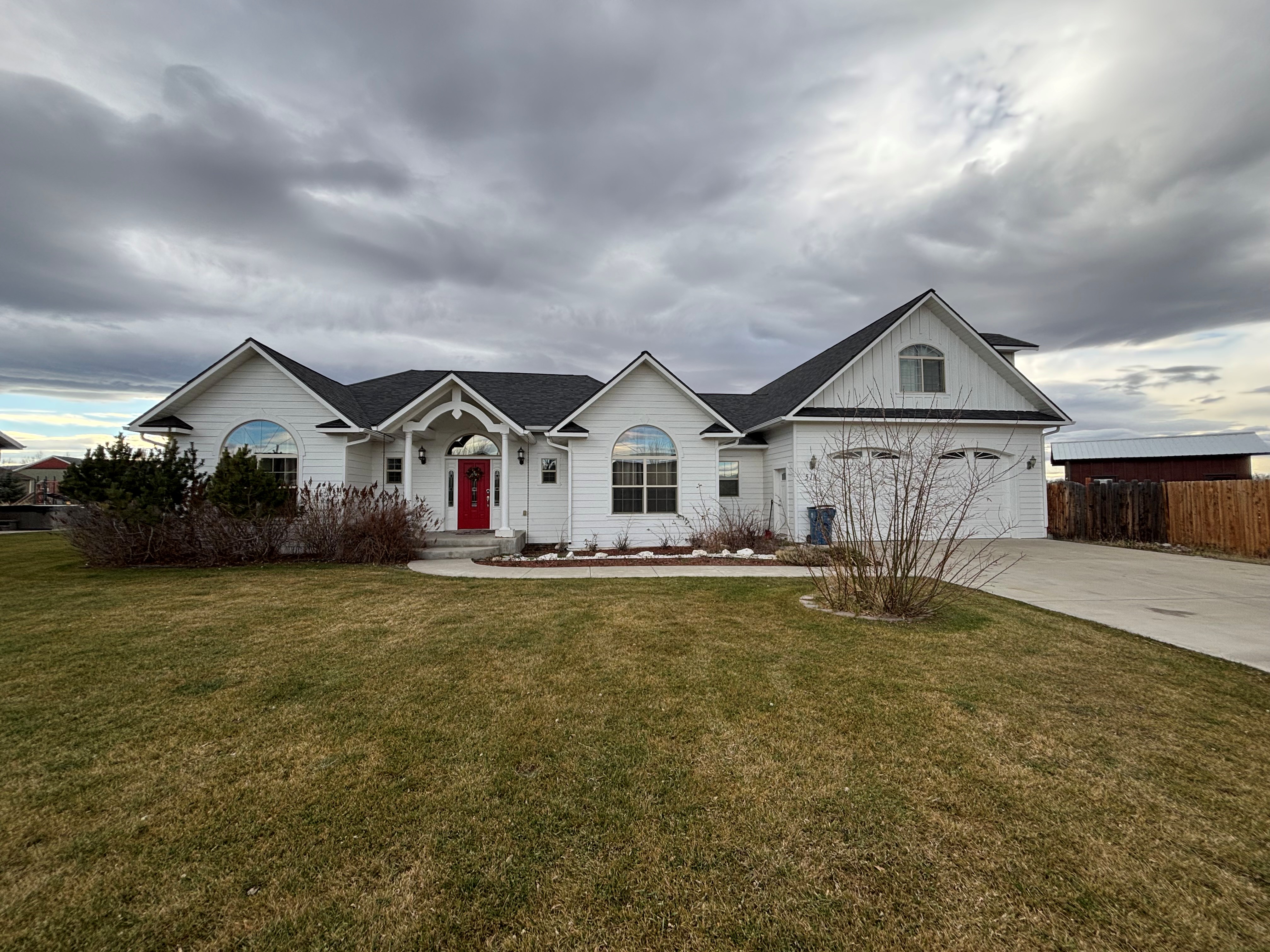 Partially fenced in yard with fire pit available for use.